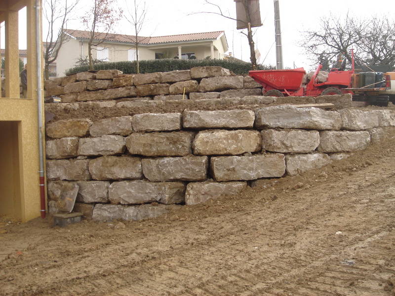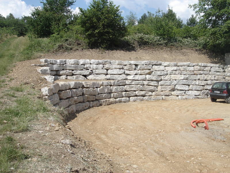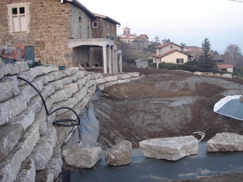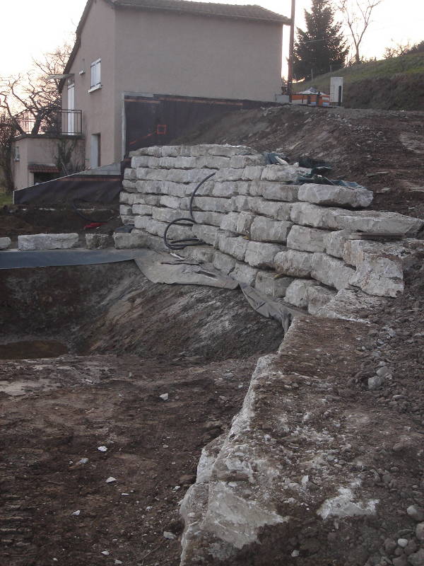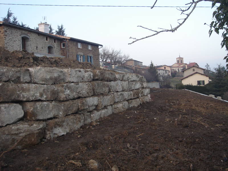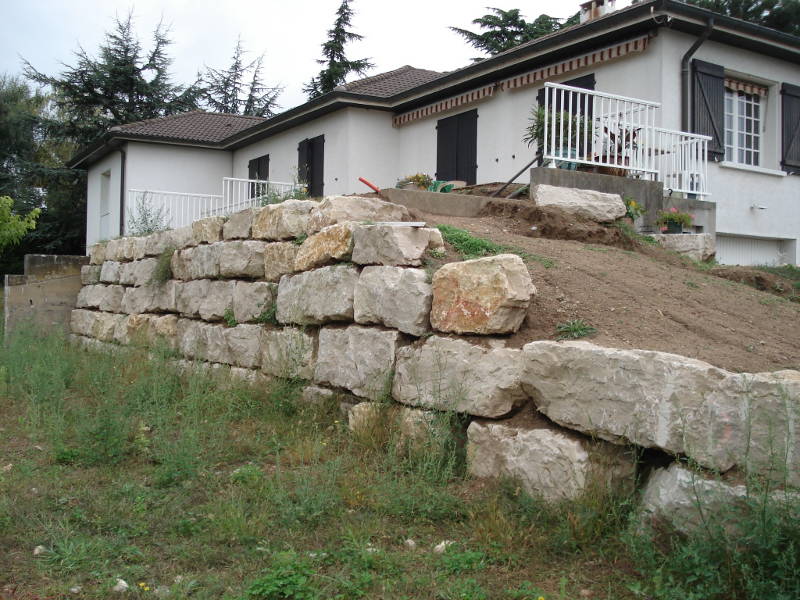 Réglage de niveaux pour autre finition, apport de terre végétale, pose de panières, pose d'enrochement, remise en place des terres, création de voie d'accès, finitions: gravette, gore, gravier de couleur...